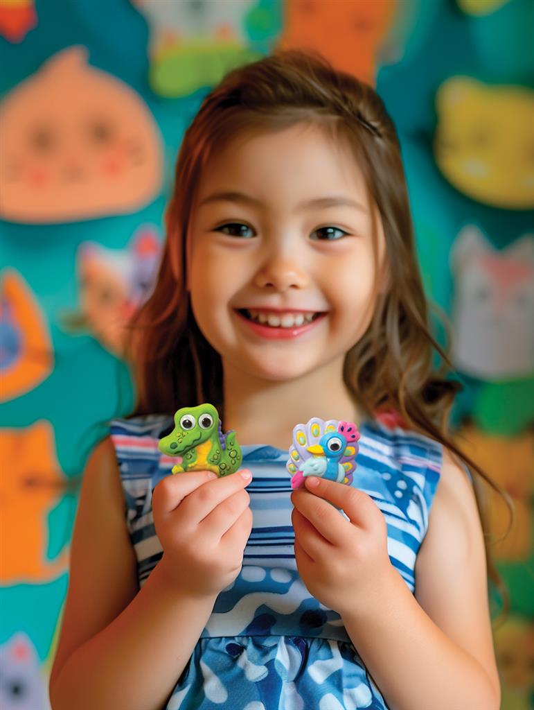 Bring smiles to your space! Our adorable animal magnets and badges delight with their playful eyes. Makes 6 fun magnets - Crocodile, Leopard, Elephant, Peacock, Monkey, and Giraffe.