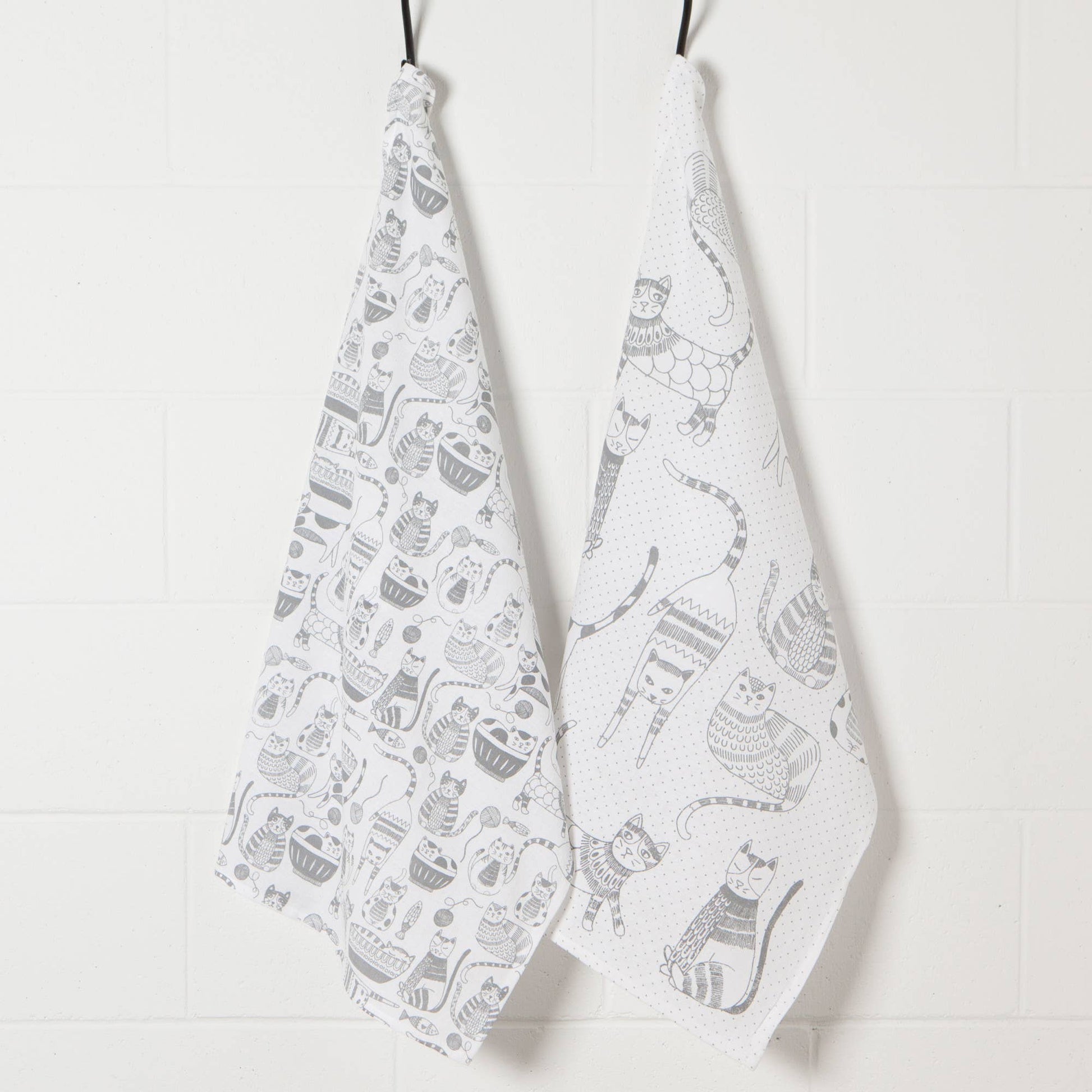 Set of 2 Cat Print London Gray Dish Towels