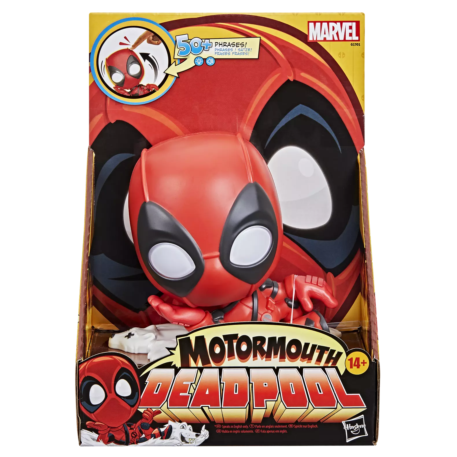 • MOTORMOUTH DEADPOOL: With this Marvel Deadpool electronic interactive toy, it's just like having a roommate who talks non-stop... who doesn't put their things away, doesn't do the dishes, doesn't take out the trash, or flush the toilet