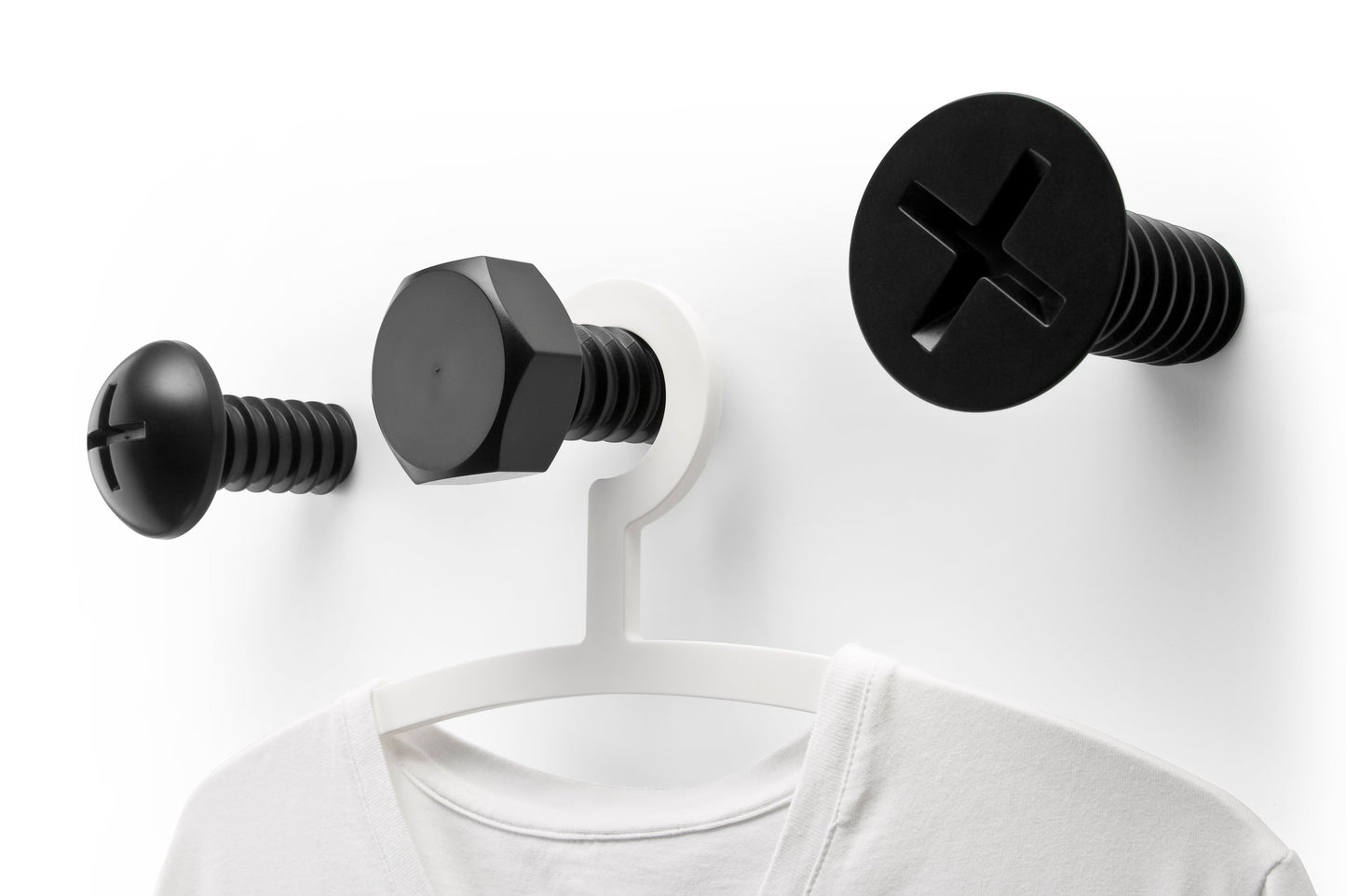Original trailers to hang your clothes, bags, or ... set of 3 screws of different shapes. Available in three colors.