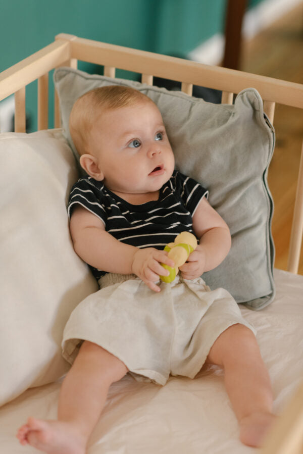 Patricio La Pistache : Its ring shape makes it easy to handle and its bright color will attract the eye of the little ones.
