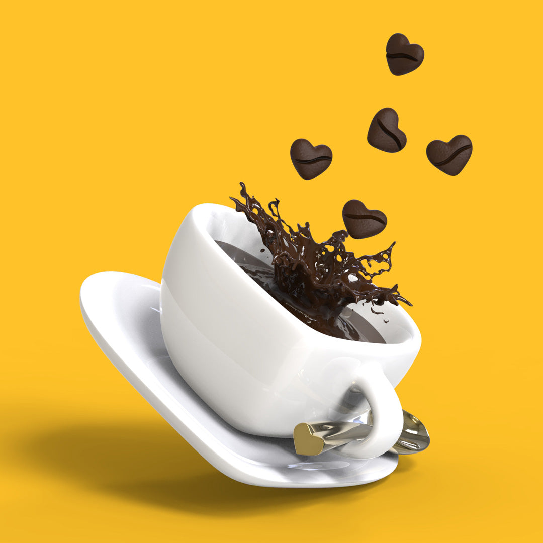 Heart-shaped coffee cup metal keychain from Metalmorphose