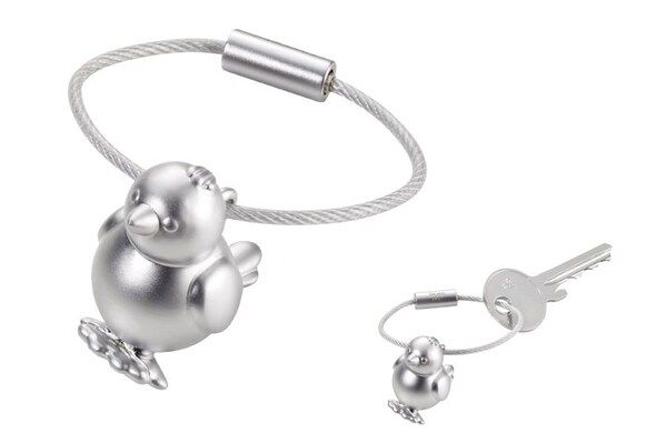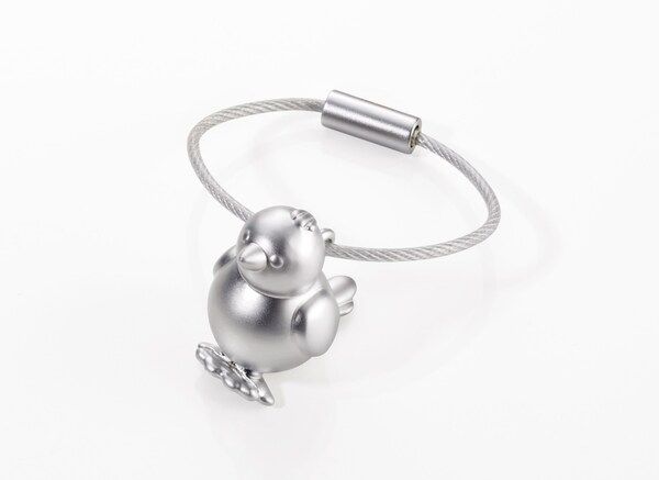 Keychain, chick, cast iron, matte, gray