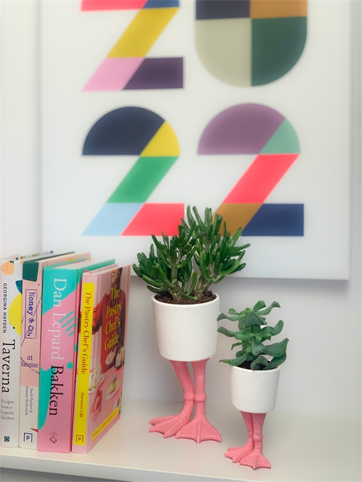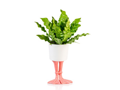 An original planter with pink flamingo feet, it is waterproof and shiny for the cultivation of your interior plants.