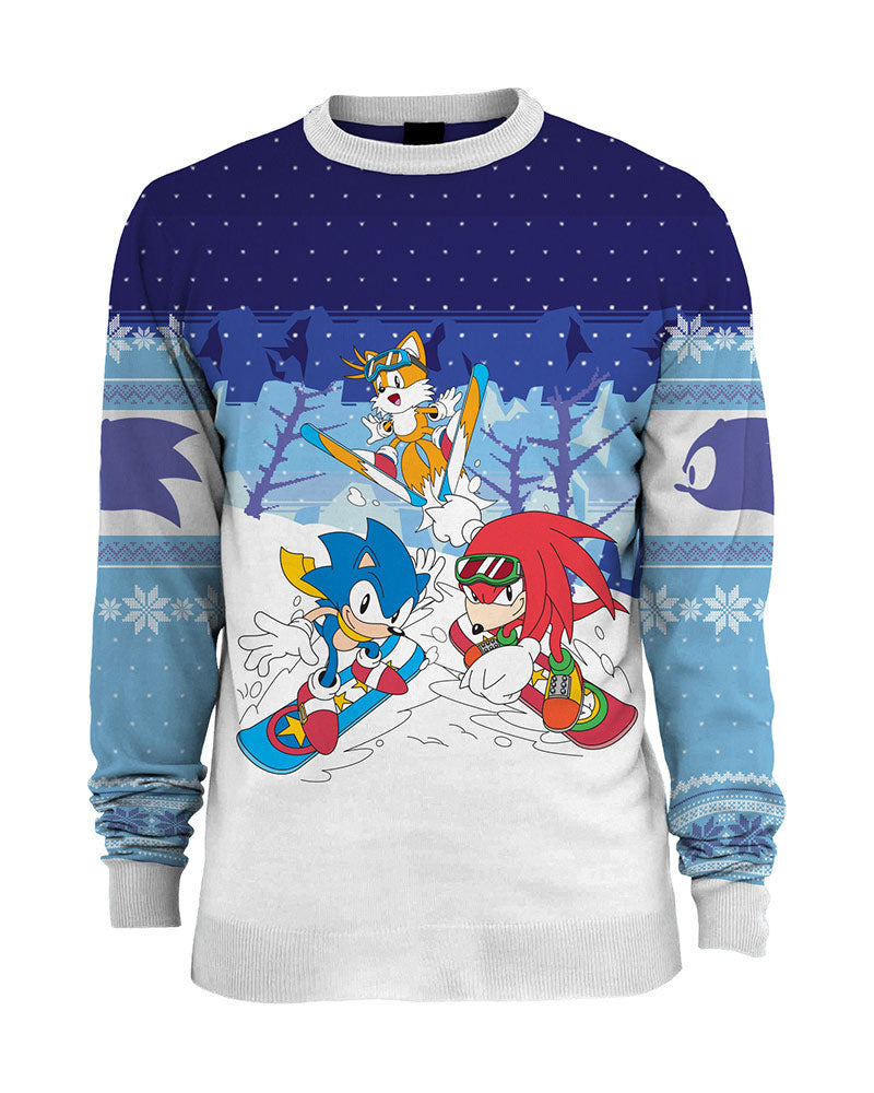 Sonic and his friends look super cool at the best of times, but when they're dressed up and ready for winter, they look their absolute best! This official Sonic the Hedgehog Christmas sweater features Sonic, Knuckles, and Tails on snowboards and skis on a very festive knitted "ugly" sweater. If you're a Sonic fan, this is the Christmas outfit for you!