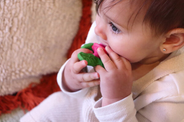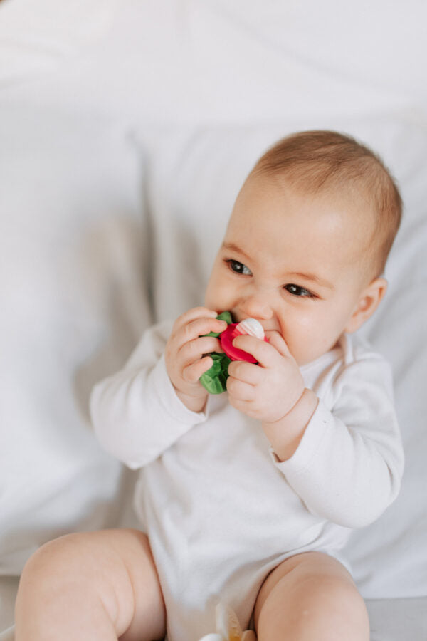 This fruity dentition toy initiates babies to a healthy lifestyle from a very young age.