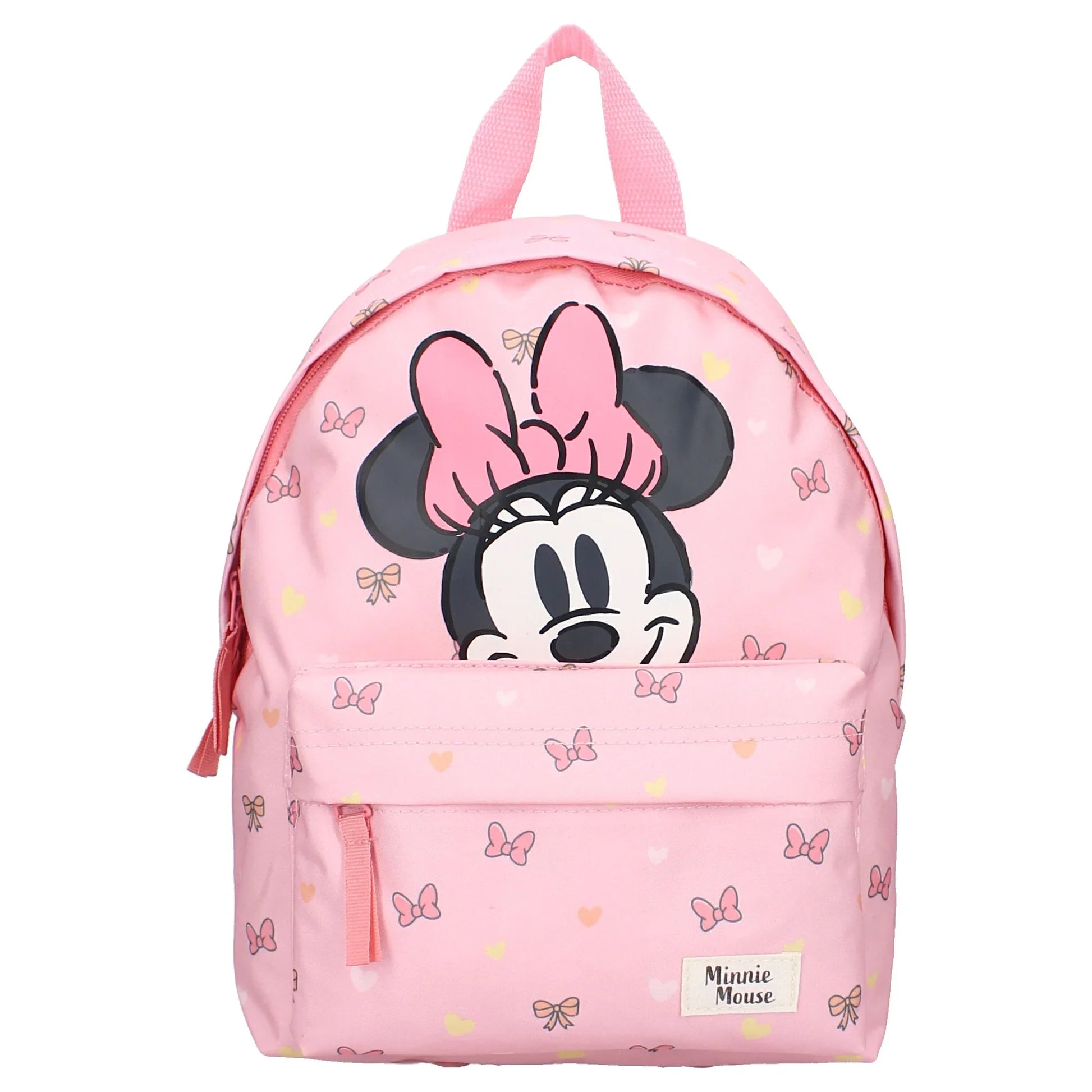 With this adorable Minnie Mouse backpack, your child is ready for school, daycare or a day out. This bright pink backpack features Minnie's happy face. The bag is finished with a small bow and pastel yellow details. The main compartment has a double zipper that makes it easy for your child to open the bag. The front pocket is perfect for small items.