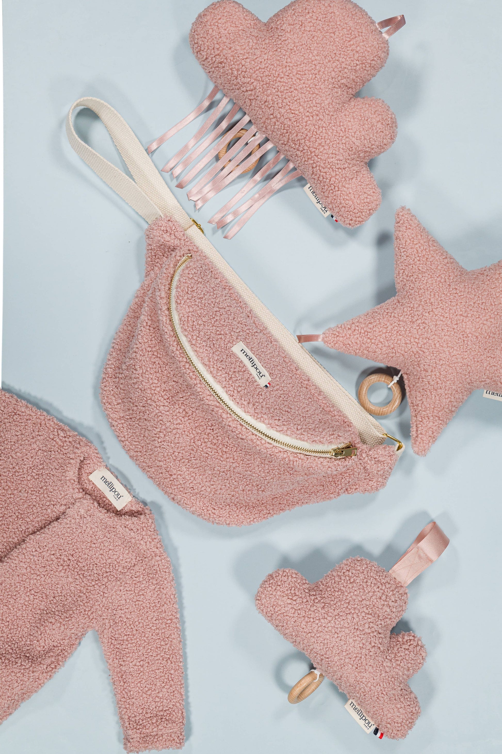 Découvrez le sac banane à langer en moumoute rose, conçu pour les parents modernes, il allie style, praticité et confort, pour faciliter tous vos déplacements avec bébé.