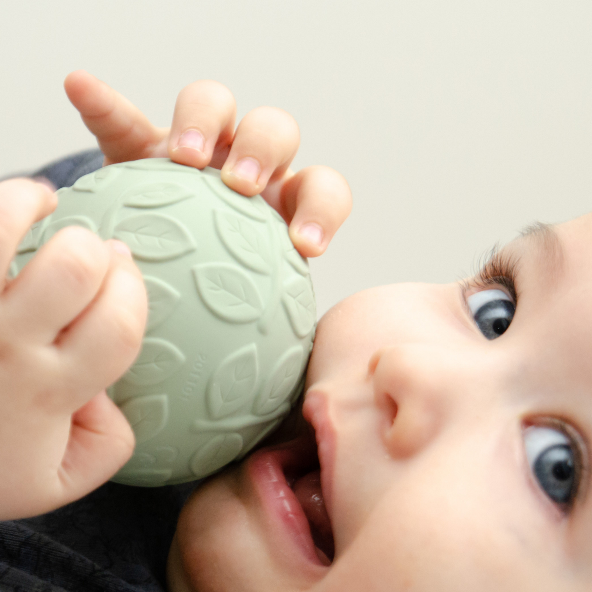 The set of NATRUBA sensory bullets is in the form of a set of two Bales of different sizes with a bell in each to stimulate the sense of hearing in a fun way. The small ball is easy to grab even for the smallest hands. Soft natural rubber and the magnificent sheet of leaves on the balls encourage sensory play and develop the senses in a comforting, elegant and playful way.
