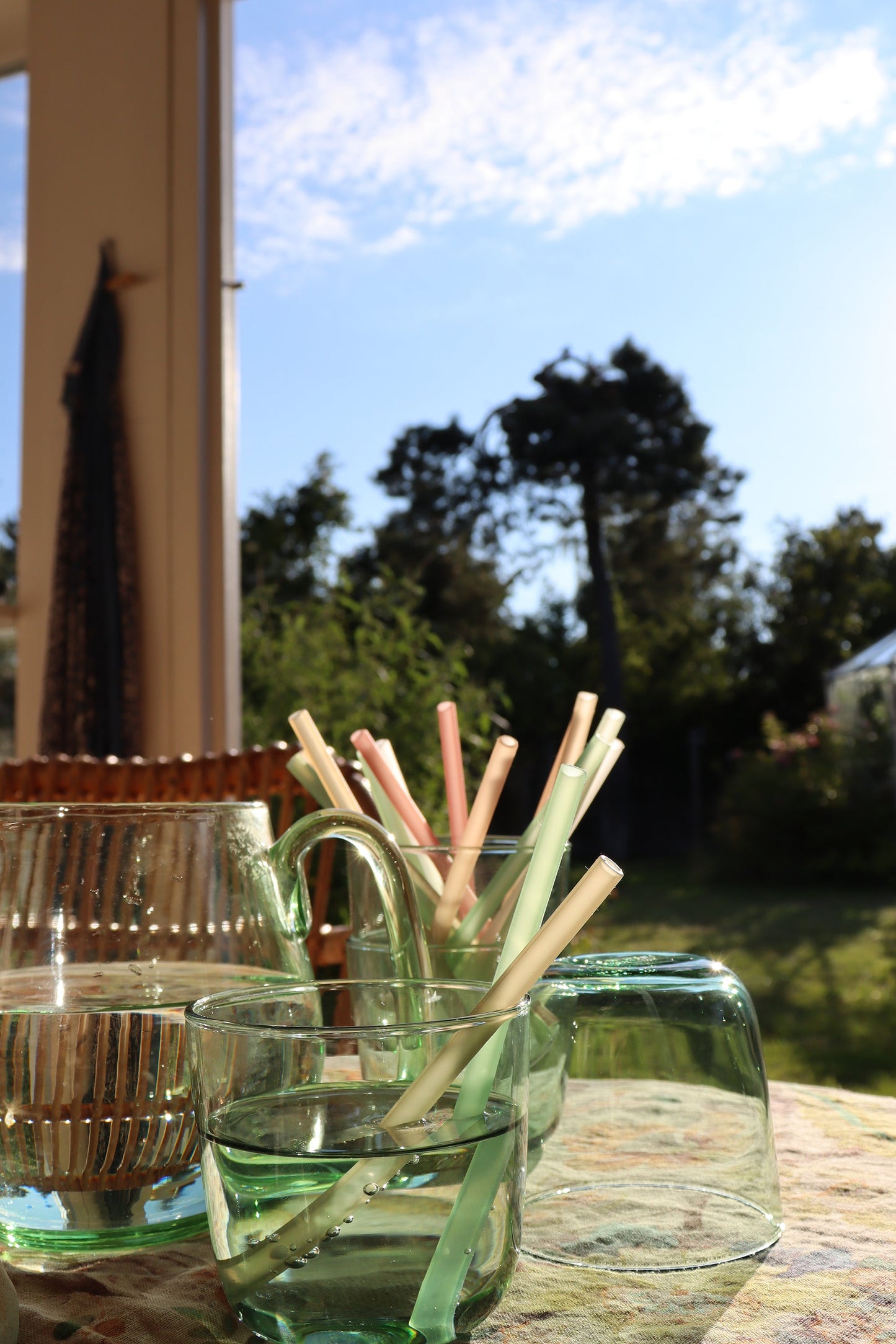 A set of 6 hand in handy silicone, medical quality. Easy to use without damaging children's teeth; Transparent, easy to clean (dishwasher and especially thanks to a small brush included), and in trendy colors. Of course, reusable therefore good for our planet. Set of 6.