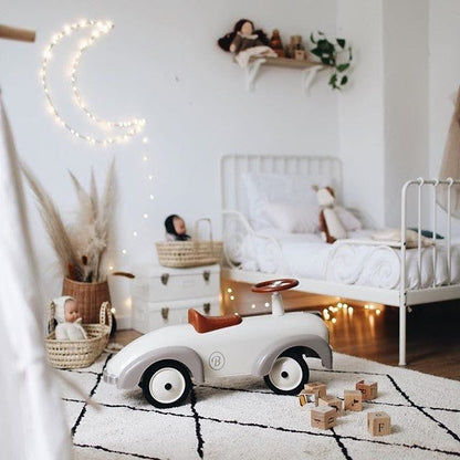 This baby car Speedster Silkgrey Baghera is made of metal. She is thus very robust and will accompany the child in all his adventures as a young pilot. Its large wheels are surmounted by rubber tires, which allows this Baghera carrier to circulate in silence on any type of land (house, bitumen, gravel, lawn, etc.). With its plastic mudguards, baby will be well protected and will be able to play the car safely. The front and rear bumper will protect the carrier from small accidents. span>