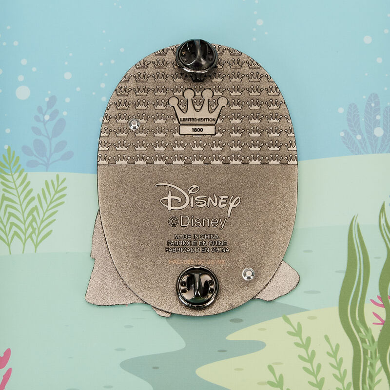 Say hello to an ocean of adventure! Display our Loungefly Disney The Little Mermaid Princess 3-inch Lenticular Pin. Disney's Ariel, dressed in princess pink, looks out a "window" to see herself in mermaid form, admiring Disney's Prince Eric statue underwater. In another view, through lenticular detail, she sees herself and Prince Eric living happily ever after. Get away with this treasure before it floats away.