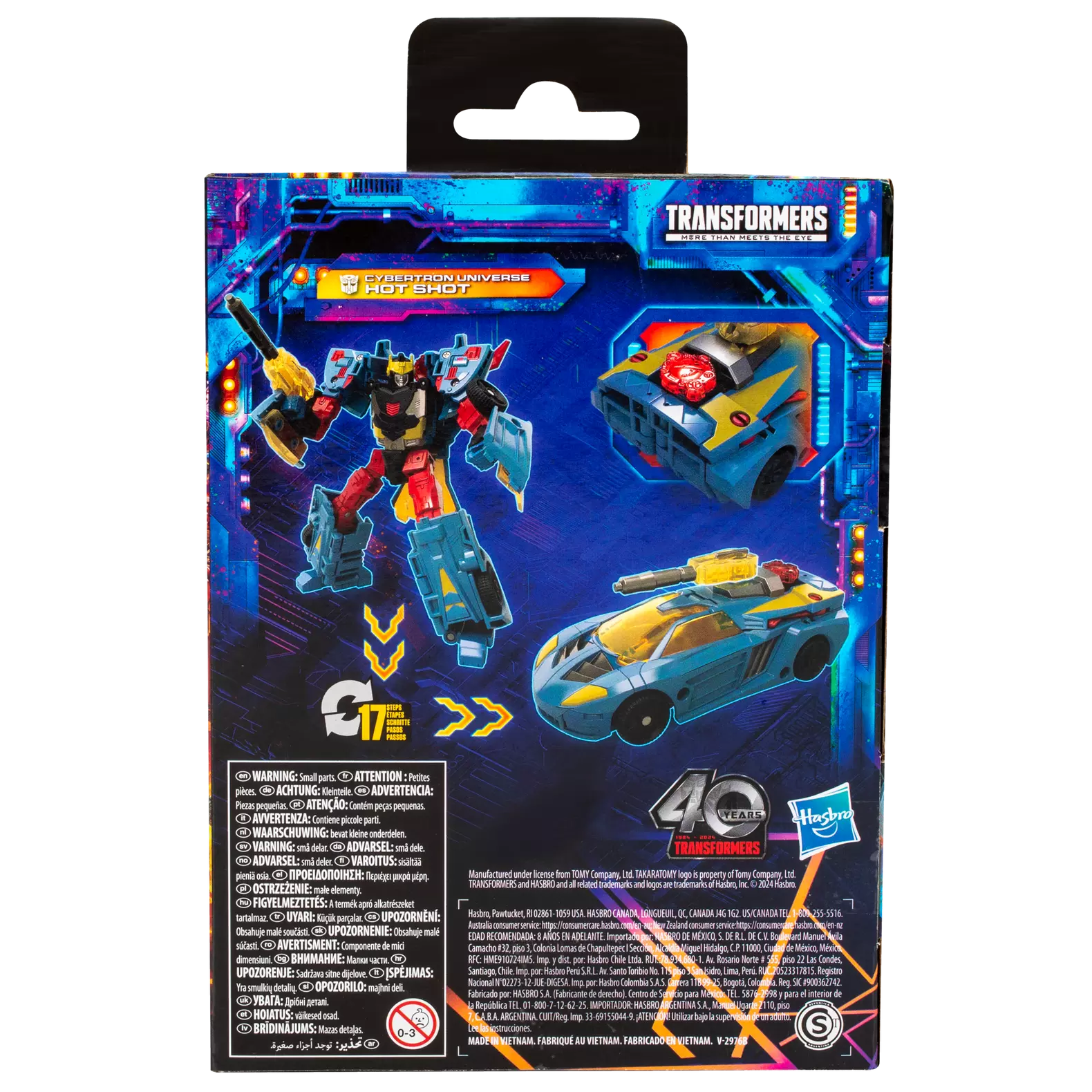 Collect your favorite Transformers robot characters and build a collection with the Transformers Legacy United line and this Deluxe Class Cybertron Universe Hot Shot figure! This 5.5-inch Cybertron Universe Hot Shot figure converts from robot to sports car mode in 17 steps. Power up for battle with the included blaster and Cyber ​​Key. This Cybertron Universe Hot Shot figure is inspired by the Transformers: Cybertron cartoon character and features articulated head, arms, and legs for dynamic posing. The Transformers Generations Legacy line celebrates 40 years of Transformers history. Transformers Legacy opens the door to a new universe that's stronger than meets the eye, where all generations of Transformers come together like never before. This line lets you collect and combine different characters to create the perfect selection of Legacy figures.