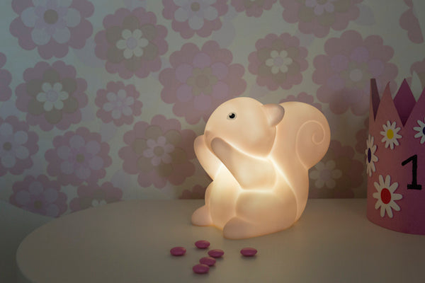 A night light in the form of the Betty squirrel, to put in any child's room. LED. Height 14cm. Sold without 3 AAA batteries, 1.5v.